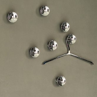 Under the spotlight. Wall hook 1880 is made of chrome-plated metal. The polished finish of its concave surface creates an unusual reflection. Sold in sets of two, 1880 is a special feature in hallways and offices. Clear-headed and timeless.