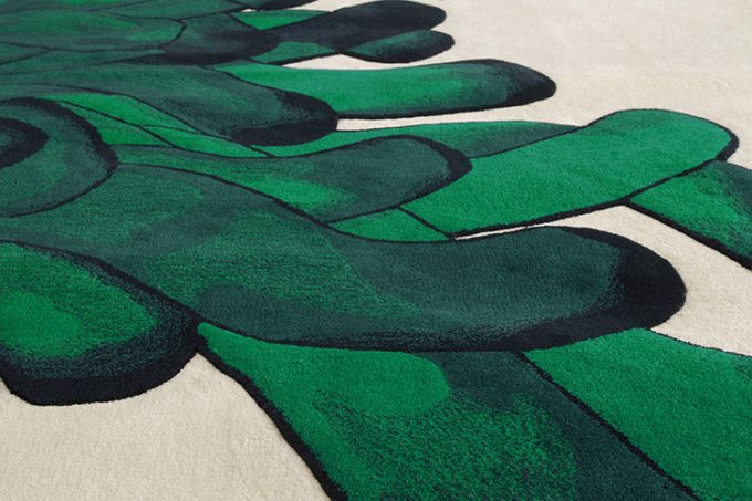 Anemone is a rug inspired by a painting in which brushstrokes imitate the movements of sea anemones. The rug is in 100% wool, 100.000 knots/sqm and handmade by artisans in Portugal who tuft and cut the wool to obtain a raised design, reproducing the anemone’s shades. Designed in 2012.