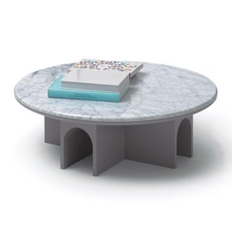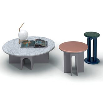 The consistency of form is transferred to the Arcolor small tables. This range can find a home around the living room, as well as being perched on the armrest of the sofa. This small detail can be useful for placing a cocktail or a coffee at the end of a long day. Rich materiality brings the small tables to life, with noble marble and striking lacquer colors creating a balanced atmosphere.