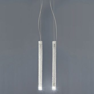 A collection with contemporary connotations that contains precious historical features: that of glass processings such as the “balloton” and the straight and twisted rigadin. Also available without meal detail. Designed 2019. Restyled 2023.
