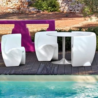A revolutionary bar counter for outside to be easily turned into a perfect and convenient fixed counter for interiors. A unit structure designed to be professionally used, but flexible enough to be used elsewhere, from the most simple to the most complex configuration. An essential and elegant design, to be rapidly customized at ease. A foldable structure to cut in half any transportation and storage required space. Optional lighting system: RGB technology with many light and color change effects, fed by a unique socket. An installation that can be synchronized more with the more complex light station, as used in a disco. Designed in 2012. Made in Italy.