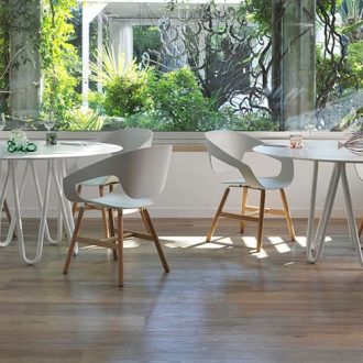 Andreas Engesvik’s Bollo series has been one of Fogia’s most defining designs. Instantly recognizable, with its generous curves balanced on refined steel legs. For 2018 we wanted to see how the designer might reinterpret Bollo for a new audience, a new time. His response is a visually arresting dining chair, unmistakably Bollo but refined for its new setting. Engesvik spent time testing the perfect density of foam for a comfort level that’s perfect for those long, drawn-out leisurely evening soirees enjoyed in southern France, Italy, and Spain. Metal frame with wooden backrest and armrests. Rubber seat with woven wadding and foam cushioning. The back and armrests have foam padding.