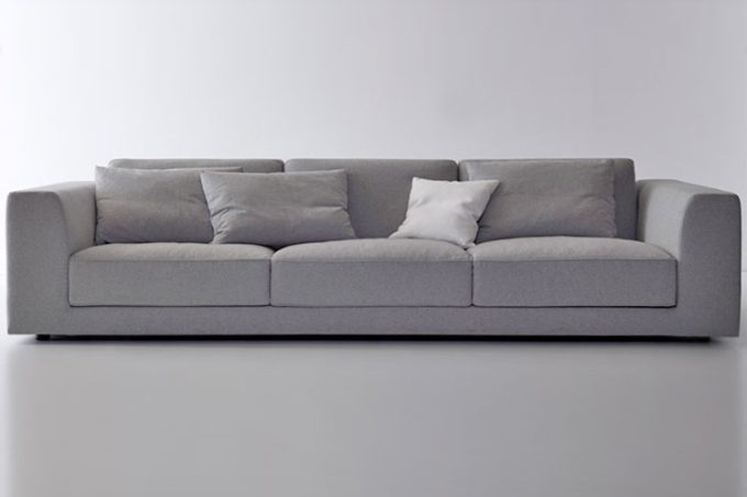 Sofa constructed of a wooden frame and retaining polyurethane foam with different densities. Optional rising movement on the back is available on a single element. Feet in ABS not visible. Comb stitching is available only on fabric. Completely removable cover. Manufacturer in production since 1958.