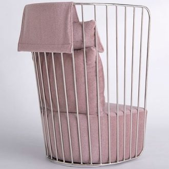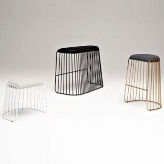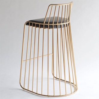 The BV stool family’s unique language is meant as a graceful alternative to the archetypal bar stool. The strikingly elegant metal base is available in smoked brass, polished chrome, burnt copper, or powder coat, while the top is offered in various upholstery options. At every angle, these stools offer a visual treat. Suitable for contract and hospitality environments. The collection includes: sofa, loveseat, lounge chair, high back lounge chair, stool with back and without back. Handmade item, slight imperfections to the frame may occur.
