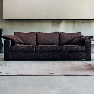 The Camillo modular sofa with structure in fir and poplar wood, with crossed elastic belt spring system. Padding in high- density expanded polyurethane, upholstery in thermo-bonded fiber with stretch jersey. Seat cushions in 100% European, channeled goose feather, 10% down, closed in independent rooms, with central insert in memory foam. Back cushions in 100% European, channeled goose feather, 10% down, closed in independent rooms. Fully removable fabric covers, only the cushions for the leather version. The collection includes: armchair or sectional sofa. Hand Made in Italy.
