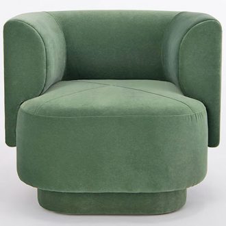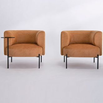 Collection of sofas, lounge chairs, side chairs, and stools with the common design language of capped tops and formed backrest system. Side chairs are offered with fully upholstered. This collection offers a seating option with a distinctive personality, various options, and cradling comfort. The collection includes: stools, dining chair, lounge chairs or bench. Handmade in the USA.