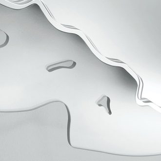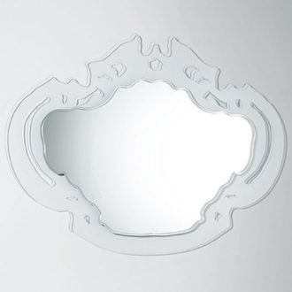 A series of geometrically shaped mirrors made out of partly reflecting and partly satin or glossy lacquered glass slabs. Available with double vertical and horizontal fixture. Four different shapes are available. Handmade in Italy.