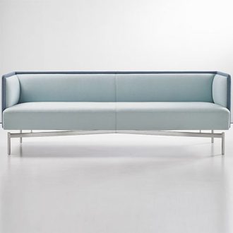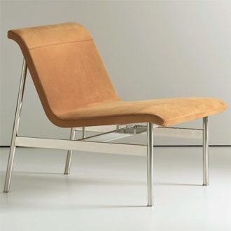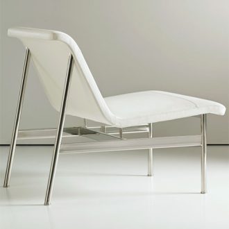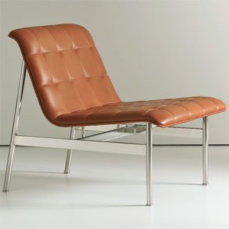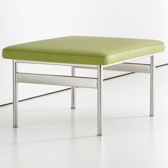 Bench constructed of a stainless steel frame in three finishes with upholstered seat. The collection includes: quilted or non-quilted, bench, lounge chair and ottoman. GREENGUARD Certified. Suitable for contract/high traffic or residential projects. Handmade in the USA.