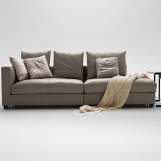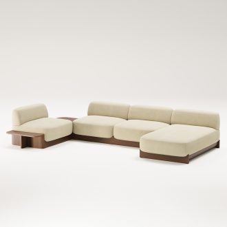Designed by Erno Dierckx Dome is a modern reinterpretation of the iconic 1970s modular sofas. This collection combines round, upholstered volumes with a solid wood base, creating a blend of coziness and geometric elegance. The upholstery is crafted to be round and voluminous, providing an inviting feeling that radiates comfort. In contrast, the solid wood base features a more geometric design. The blend of these elements results in a beautiful detail that is central to the collection’s aesthetic. The solid wood serves as the unifying element throughout the collection. It not only connects the different modules but also ensures a cohesive setup. The Dome modular sofa includes three seating modules and three side/coffee table modules, each characterized by high-quality materials and subtle contemporary details. It offers unparalleled flexibility. Choose from ottomans, one-seater sofas, table complements, and even a chaise longue, all crafted for seamless combination. Dome’s versatile modules allow you to create the perfect layout for your needs, while the geometric wooden base seamlessly connects for a clean and uncluttered look, no matter the size. Removable cover in the fabric version. Leather cover non-removable. Made in Portugal.