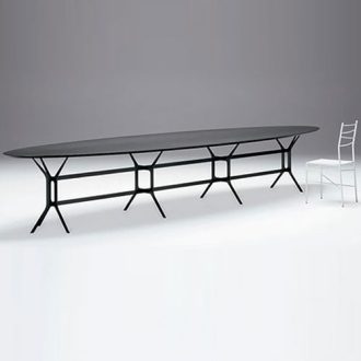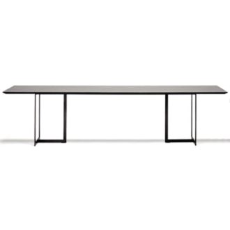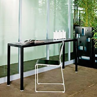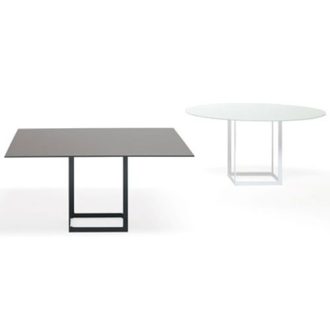 Table with glass or high-pressure laminate top and steel frame. The collection includes: metal top, glass top, HPL, natural waxed top, outdoor, console, coffee, and office tables. Inquire for custom options. Made in Italy.