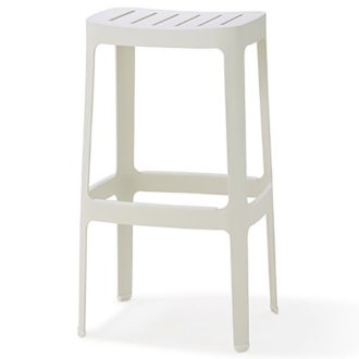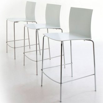 Counter stool constructed of stainless steel with polypropylene seat and back. Available in a variety of finishes and colors. Indoor/outdoor stool. Suitable for contract and high traffic environments. The collection includes a chair.