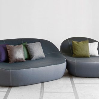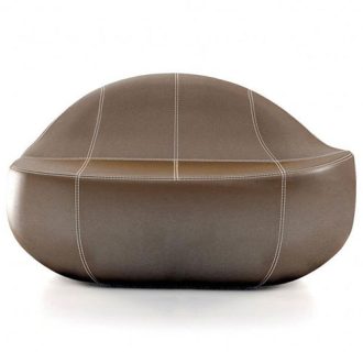 This organic armchair is meant as an enhancement of the Flirtstones family. It is a round and asymmetrical lounge chair that can be coupled with its footstool. Despite the large seat, it is limited in dimensions: this makes it suitable for hotel lobbies and rooms, lounge areas and waiting rooms. Thanks to its considerable comfort it is also a residential product for domestic use. The structure is made of a fire retardant polyurethane foam. Fabric upholstery is removable. The collection includes: large armchair, small armchair, and sofa. Designed in 2013. Hand Made in Italy.
