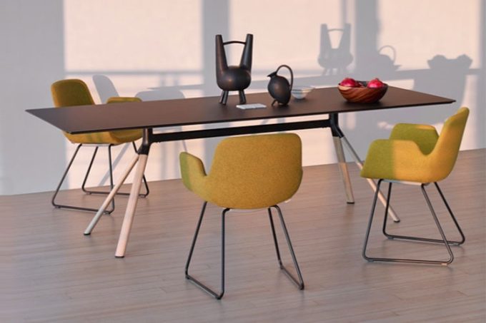 Universal, versatile, suitable for any use, it changes thanks to the many possible configurations. At the base of FORK, the new table designed by Tomoya Tabuchi, is the concept of “leg system”, which provides the ability to expand, potentially indefinitely, many versions of a table. It can be used in the office or in other areas: alone in its larger variants, or grouped, in compositions. Inspired by the branches of a tree, which adapt to the environment, or to the flow of a river that runs along its banks, the leg system developed for FORK provides some common parts in die-cast aluminum: a structure that allows varying the configuration, playing on different finishes of legs or columns. Table with a base composed of aluminum drawn tube with elliptical section and connection in die-cast aluminum powder coated. Legs veneered in wood or powder coated with adjustable feet in nylon. The Collection includes: dining, bistro, and bar tables. Suitable for contract/high traffic or residential environments indoor and outdoor. Designed in 2016. Made in Italy.
