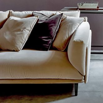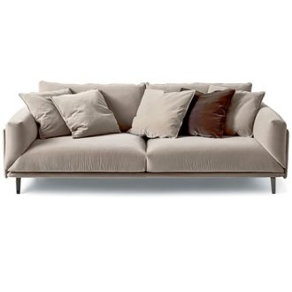 Structure in multi-layered wood covered in polyurethane foam. Metal base with braided elastic belts. Seat cushions in feather with shape-retaining polyurethane foam support; back cushions in feather. Wooden base in massif beech painted wengé or walnut colors. The collection includes: armchair, sofa, sectional sofa, and ottoman. Manufacturer in production since 1958. Handmade in Italy.