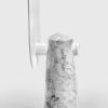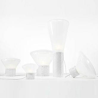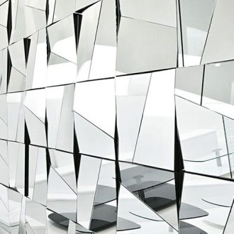 Iconic is a mirror that proudly stands as a statue. In marble or oak, the pedestal shape and metal cylinder intersecting both base and mirror contrasts with the thickness of the mirror they support. This oversized, free-standing psyché will hit its mark in any dressing room. Designed in 2018.