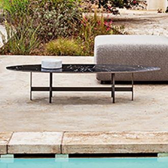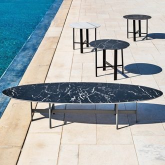 The focus on matter is one of the most peculiar characteristics of this new product: the tables combine a precious cylindrical base of marble or concrete, conveying stability to the whole, with a top of Fenix laminate in several shapes (a circle, a rounded-off square, a hexagon, a rounded-off triangle). The tables can be accessorized by a handle-shaped bent tubular, facilitating its movement whenever needed. A perfect support for books, magazines, glasses, and other objects, elegantly fit in public spaces (corporate environments, hotels, bars, restaurants, etc.) as well as in apartments with a contemporary flavor. Occasional table with marble base white Carrara, black Marquinia, or concrete. Top in hpl Fenix® white or black in several shapes and powder-coated metal stem. Available in two heights with or without a handle. Designed in 2016.