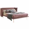 The headboard of Jill bed is formed by abundant and comfortable cushions creating a corner of intimacy and comfort. The full and oversized padding of the headboard contrasts with the base, thin and lightweight, suspended on slender feet in pink gold finish. Various slatted base options are available. The bed cover is completely removable. Available with storage. Hand Made in Italy.