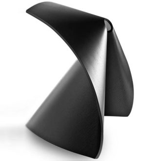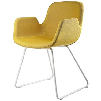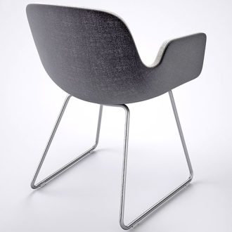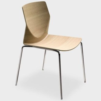 An unfussy, rigorous design characterized in particular by the unconventional curvature the backrest follows. Stackable chair or chair with arms. Sandblasted stainless steel frame. Seat in curved wood seat available in several finishes or fully upholstered. Leather seat pad is optional. The collection includes: stool or chair. Suitable for contract/high traffic and residential environments. Designed in 2006. Made in Italy.