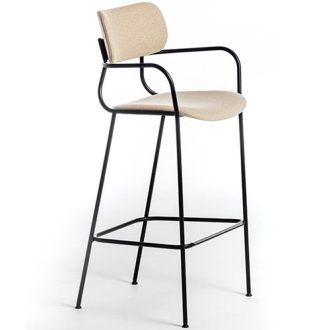 The linear, minimalist lines of the Kiyumi collection are the result of a highly complex design project. The seat and curved backrest in ash veneered plywood or upholstered in fabric or leather are attached to a sinuous tubular steel frame. Even in the upholstered version the frame, aesthetic before being functional, remains visible although the screws are invisible. Versatile, lightweight, and stackable, the seats designed by Tomoya Tabuchi fit into a variety of settings, from homes to contract environments such as bars and restaurants, where its style and excellent construction stand out. the collection includes: chair with or without arms and a stool. Suitable for residential and contract/high traffic environments. Handmade in Italy.