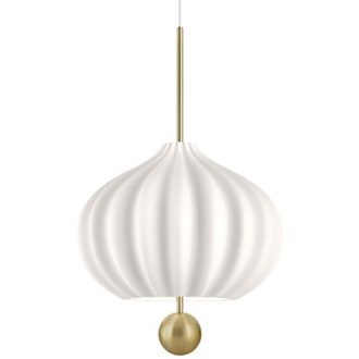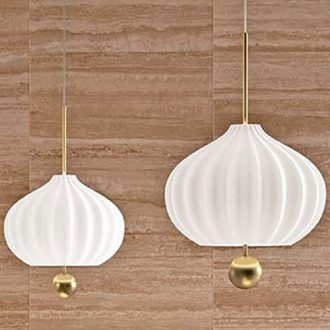 “Its perfect balance is inspired by the floral world in which colors, shapes, sizes, and smells coexist in a fully balanced harmony.” Suspension lamp. Opal diffuser made of two layers of mouth blown glass. Satin brass structure. Light Bulb: Halogen 3x30W E12 or 3 x 6W E12(Not Included). Designed in 2019. Hand Made in Italy.
