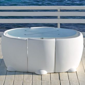 The successful launch of the One-the-move side table created a new demand from our customers to bring another size and color in play. The Danish design team STRAND+HVASS decided to make a smaller version of the side table that could both be used together with the larger version and of course as a stand-alone side table. We decided on a new taupe color – a nice warm grey color that is also said to be the new black. The new color is both available in the small and large version of the on-the-move table. The idea behind the design was to create a multifunctional side table with a loose tray. The Danish designers created a unique solution where the table top can easily be lifted off and used to carry drinks from the kitchen to the terrace. And easy to grasp handle secures that the One-the-move table can be moved indoors after use. It is made in 100% aluminum thus it is designed to All-year usage outdoor. However, to minimize cleaning and keep the overall look of the product for many years, we recommend to store it indoors during the winter time or use a protective cover.