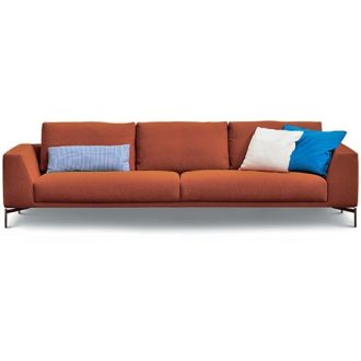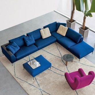 A collection of modular units that can be combined as required, with three types of pouf that can further personalize each configuration; the feather filling makes it particularly soft and the wide choice of removable covers ‘dress’ it with elegance. Some units can be equipped with a sliding mechanism, which allows the depth of the seat to be extended, so making it even more comfortable. The standard seat padding of this model is in feather. Available on request in Air soft version. Fully removable cover in fabric or leather.