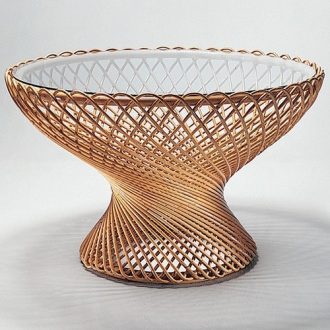 Iconic coffee table made of rattan with glass. Designed in 1967. The same manufacturer has been producing this item since then. Also available as a lounge chair. It can be used outdoors under an overhang or for outdoor use with a special outdoor lacquered finish. Handmade in Italy.