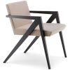 Sagitta is an armchair with a great personality, suited for furnishing home and contract environments with a unique style. A perfect mix between ergonomics and design, Sagitta is characterized by a peculiar structure in beech wood that connects the legs and armrests in an expert manner, creating a surprising suspended effect with the frame. The seat offers the greatest comfort, thanks to the soft padding in fire-resistant polyurethane. Designed in 2015. Handmade in Italy.
