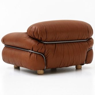 A reissue of a historic design by Gianfranco Frattini in 1970, Sesann is a collection of sofas and armchairs with soft, cozy forms that evoke feelings of warmth and sensuality, thanks to the tubular metal frame, which acts as an architectural structure, enveloping, containing and accentuating the cushioning. Sesann commands its space with its bold volumes and elegant, sophisticated design. With a choice of leather or fabric coverings to create striking combinations of colors and textures between the cushions, frame and ash wood feet. Armchair cannot be made in Vinyl. Handmade in Italy.