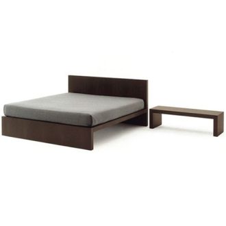 Bed offers a tall, dramatic headboard and modern yet elegant design. Solid Birch headboard w/plywood reinforcements, side, and end rails all covered in polyurethane foam with a fabric lining. Wood slat system w/adjustable slides to control firmness. Available in leather or fabric upholstery, the leather headboard features additional cross-stitching for a smooth, wrinkle-free surface. Fabric covers are removable. 12″ mattress is suggested. Assembly required.