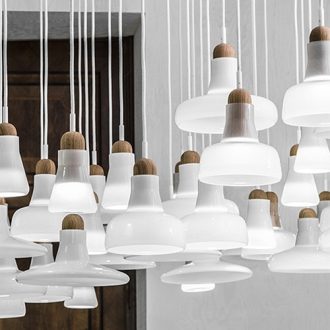 A suspension light composed of three hand-blown glass globe on three brass pipes. Made in Hungary.