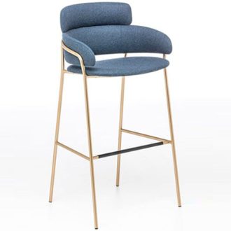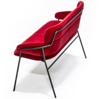 Two-seats bar sofa features a seat and back made with durable tubular steel and three-piece construction for maximized strength sure to hold up to whatever wear and tear comes its way. Made with chromed or painted steel frame, upholstered seat, and back with flame-retardant polyurethane foam. Suitable for residential and contract/high traffic environments. The collection includes: dining chair, stool, lounge chair, ottoman, bar sofa, and sofa. Suitable for residential and contract/high traffic environments. Designed in 2019. Handmade in Italy.