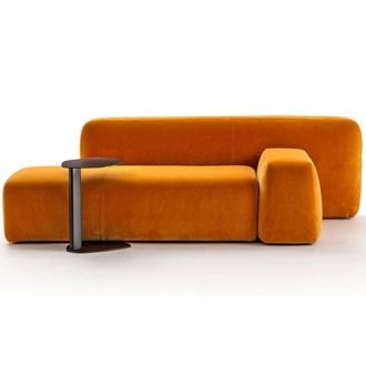 Suiseki is a collection of padded seats inspired – as its name suggests – by the Japanese art of arranging naturally occurring stones. Spontaneous, harmonious lack of alignment takes the place of geometric shapes in the simple modular units with organic volumes. Everything starts with three core building blocks: a low, broad seat, a backrest, and an armrest. They can be combined with each other in an offset display of heights, widths, and depths. The resulting sofas are sculpturesque and suitable for all types of use, in everything from the contract market to private homes. The collection includes: armchair and sofa. Designed in 2019. Handmade in Italy.
