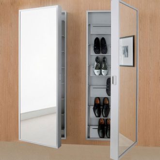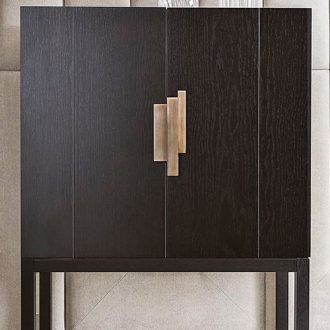 Handing modular cabinets available in various compositions and for many applications. As shown with 2 drop-down doors. A big square module with open niche and other with open door, and a small square module with open door. All the pieces with structure in MDF and possibility of lacquered matte, lacquered high gloss or veneer finishing. Inquire about customization.