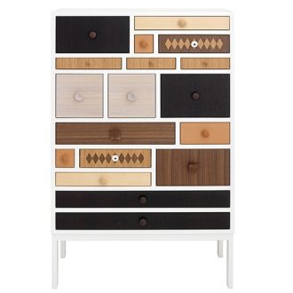 Top: white lacquered MDF, Solid natural oak and walnut painted solid oak