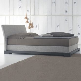 Padded and upholstered bed base. Mattress support in multi-layered wood panels. Cover is removable with mother of pearl buttons. Available with storage under mattress. Inquire about headboards and wall panels.