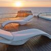 A sophisticated and elegant idea with high-quality finishes, as in upholstered version. Zoe’s design harmoniously blends in with the back adjustment system by means of a gas piston, which can be activated by simply pushing a button. The Poleasy shell contains metallic devices that are entirely chromed and which guarantee a long and complete level of resistance against atmospheric conditions. Suitable for indoor/outdoor use. Designed in 2008. Made in Italy.
